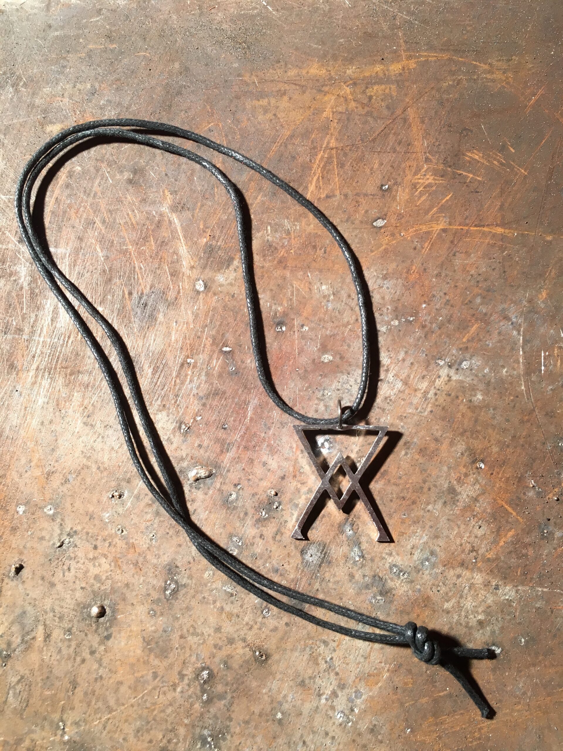 Arsenic symbols necklace. Cut by laser in stainless recycled steel.