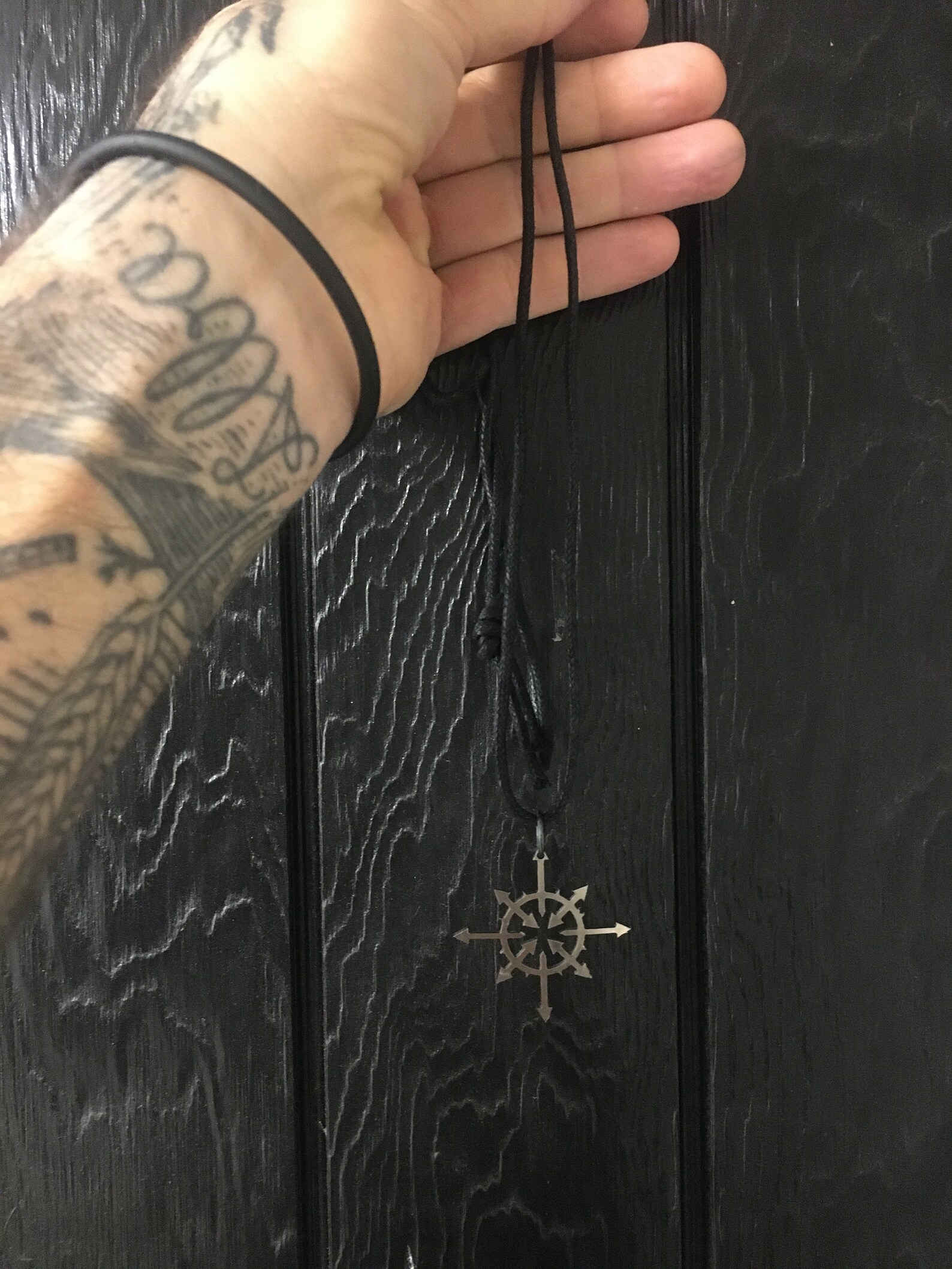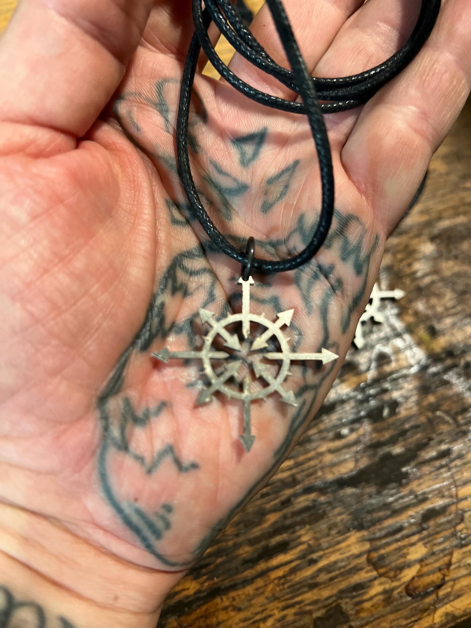 Chaos star – necklace stainless steel and faux leather necklace.