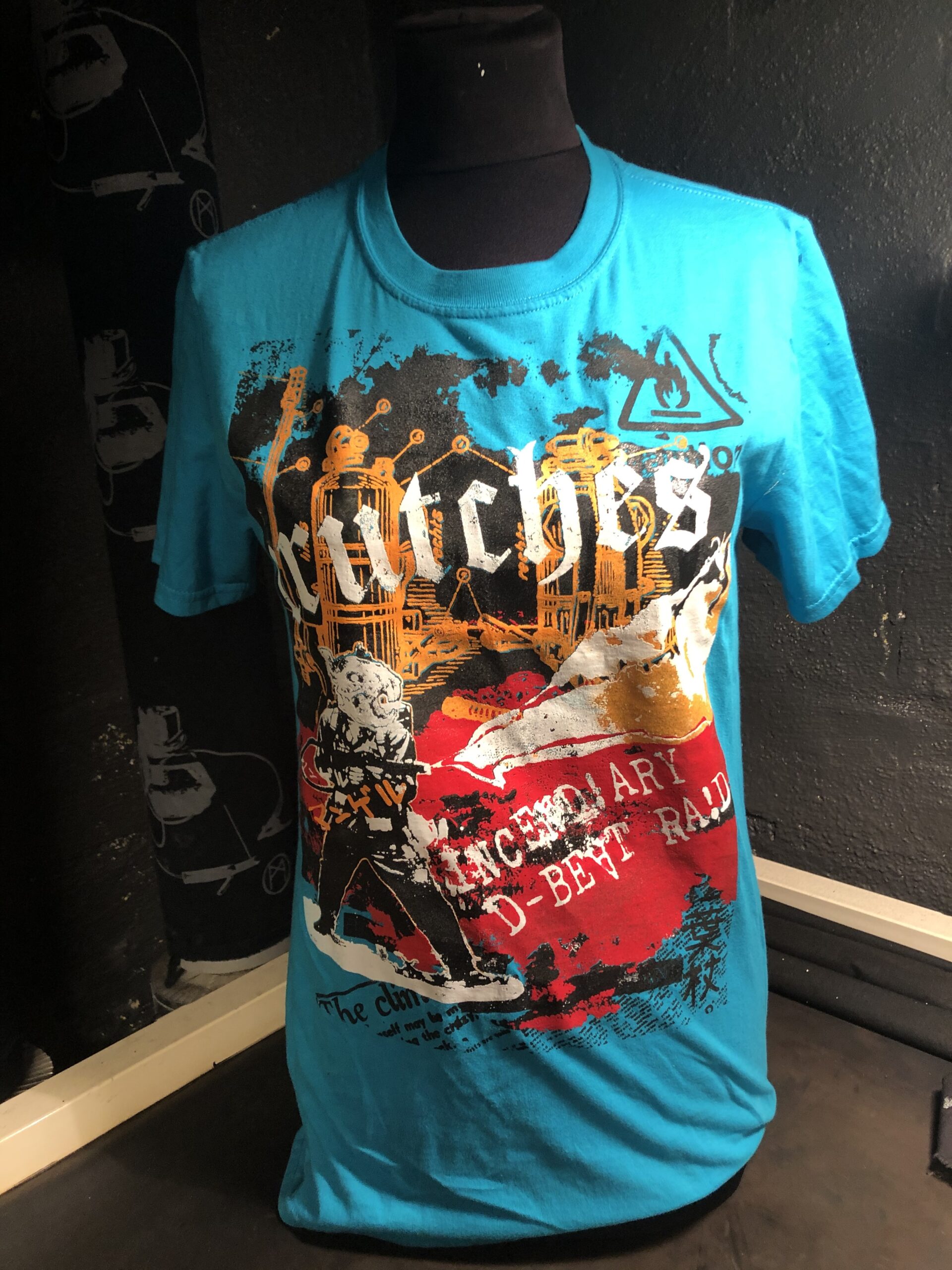 Coverup recycled t-shirts. Tour shirts from 2019 incediary d-beat raid tour.