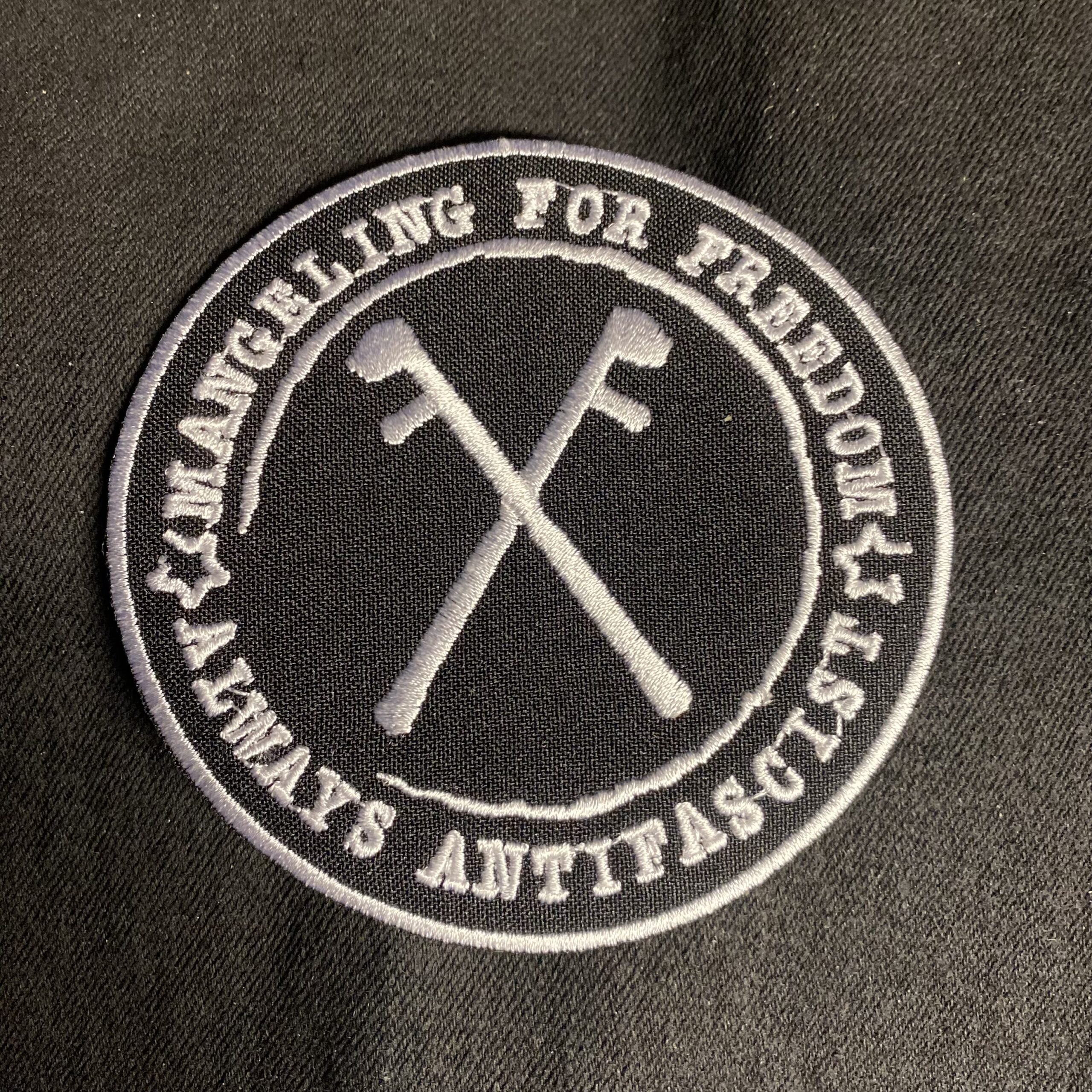 Crutches, mangeling for freedom, always antifascist – embroidered patch