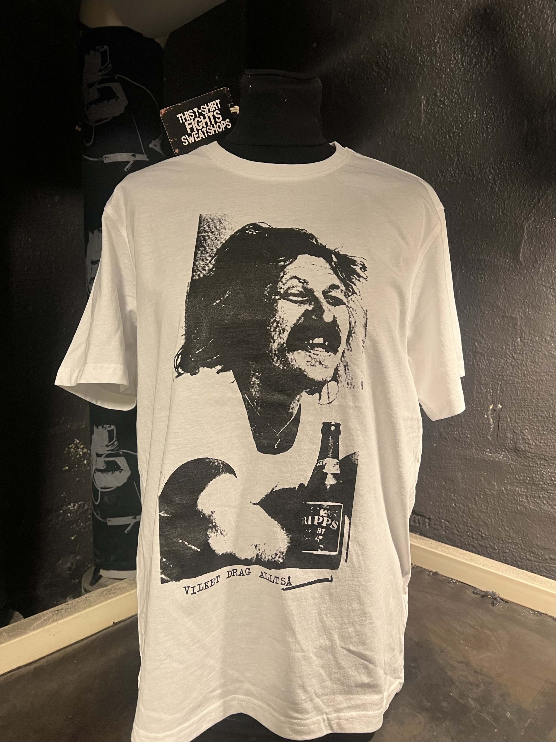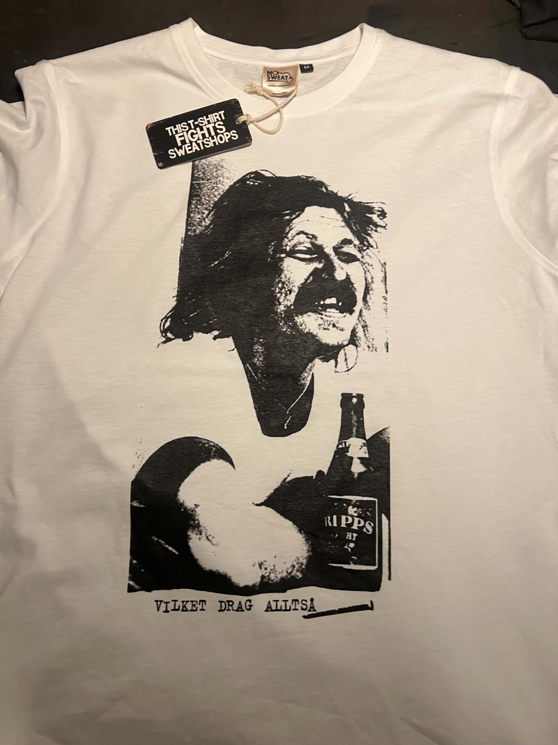 Printed on No Sweat shirts. A campaign sourcing the workers a fair living and a collective union in a true syndicalist way.